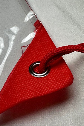 Transparent, made of clear PVC material.