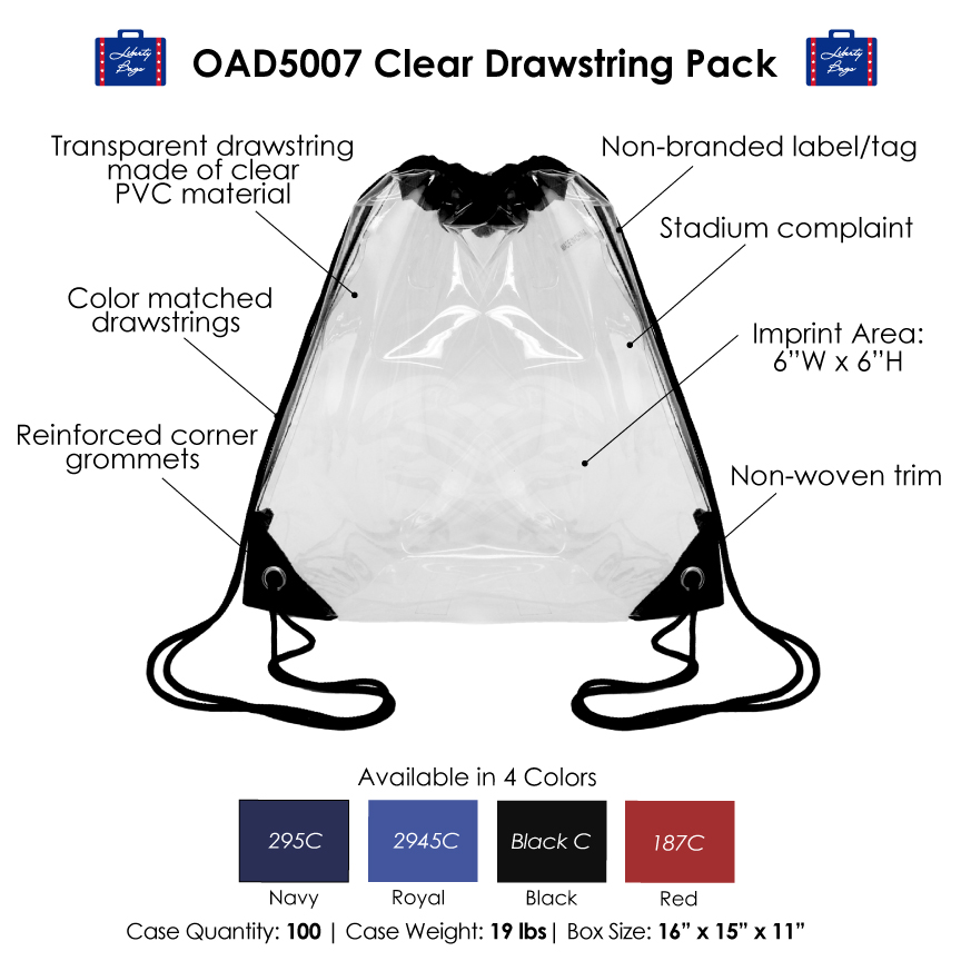 New OAD5007 Liberty Bags Clear Drawstring Pack